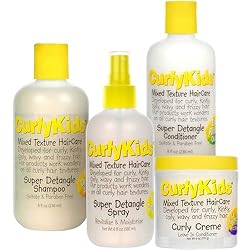 CurlyKids Mixed Hair HairCare Set Super Detangling Shampoo 8.0 Ounce, Conditioner 8.0 Ounce, Spray 6.0 Ounce, Curly Crème Conditioner 6.0 Ounce - 4-Pack